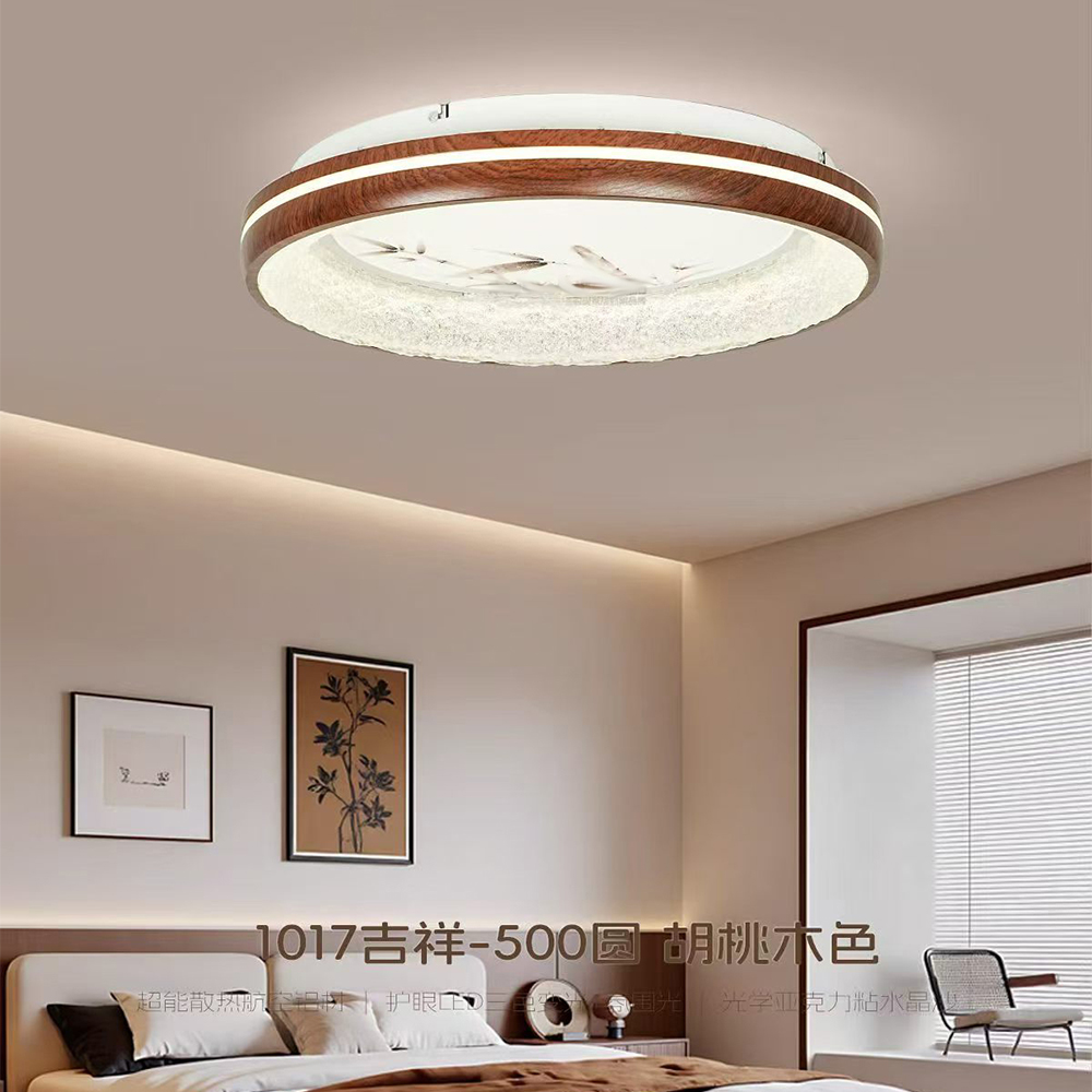 型号:XJJ-HM520-3吸顶款-480x255x85mm-36w-铁艺+实木+PE-胡桃木色-卧室灯