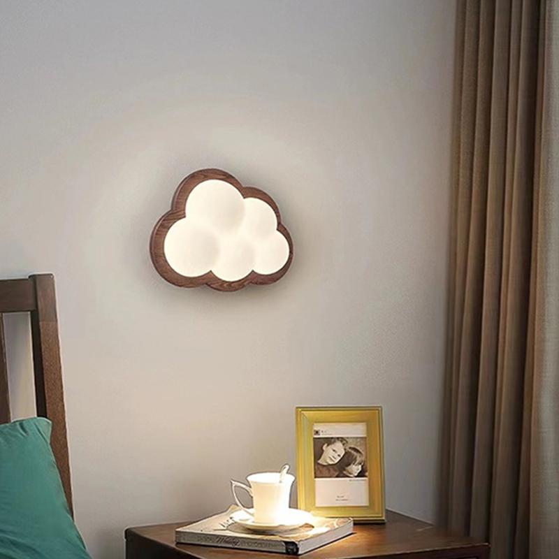 型号:XJJ-HM517-云朵-215x170x95mm-12w-铁艺+实木+PE-胡桃木色-过道灯